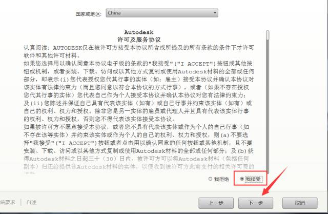 5.选择我接受,然后点击下一步。