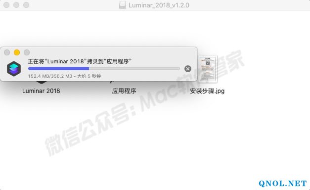 3.将【Luminar 2018】拖到【应用程序】文件夹里。