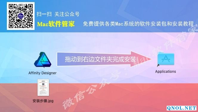 2.打开解压后的文件夹,将「Affinity Designer」拖到「Applications」文件夹里。
