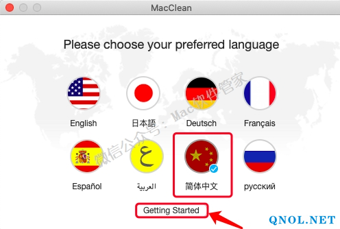 1)点击【MacClean】选择【Choose Language】。