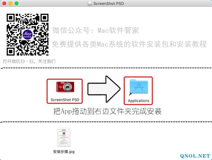2.将【ScreenShot PSD】拖动到【Applications】文件夹里面。