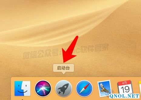 4.在程序坞中点击【启动台】。