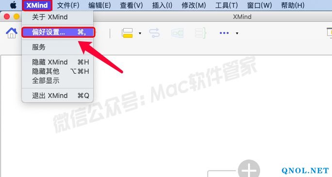 15.点击菜单栏中的【XMind】然后选择【偏好设置】。