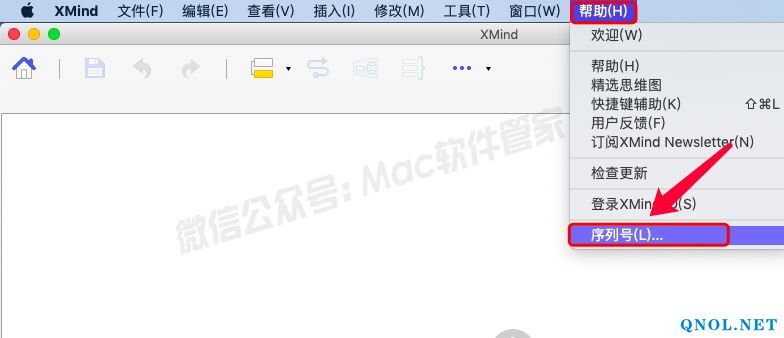 17.点击菜单栏中的【帮助】然后选择【序列号】。
