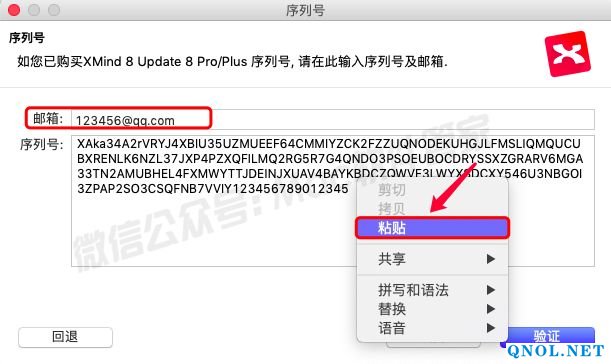 21.在软件的邮箱处随意填写,在序列号处鼠标右击选择【粘贴】。