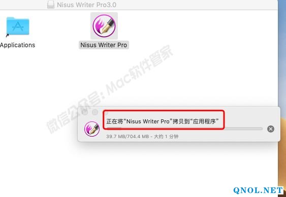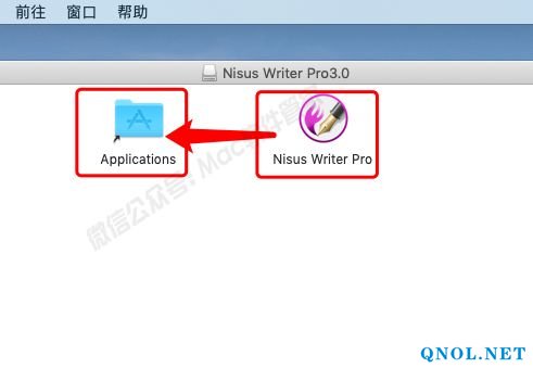 3.将【Nisus Writer Pro】拖到【Applications】文件夹里。
