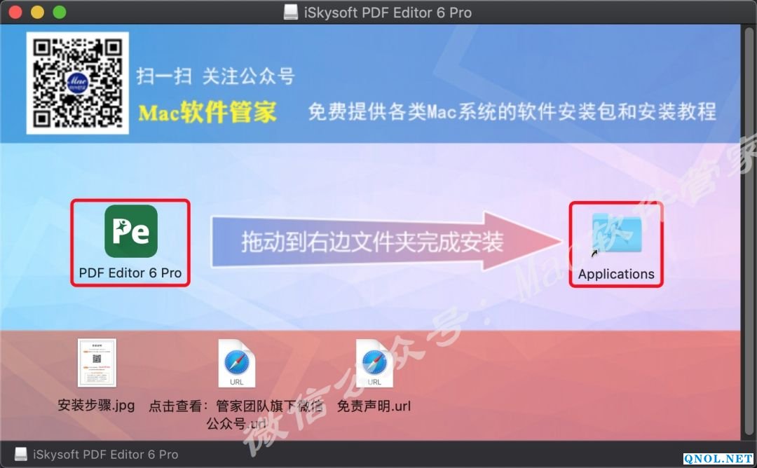 2.打开解压后的文件夹,将「PDF Editor 6 Pro」拖到「Applications」文件夹里。