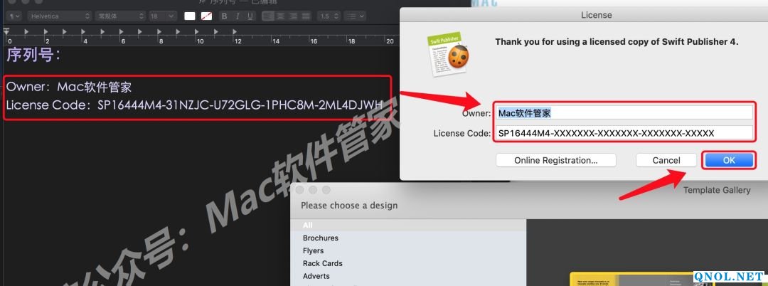 9.将序列号文档中的「Owner」和「License Code」,拷贝到软件的对应位置,然后点击「OK」。