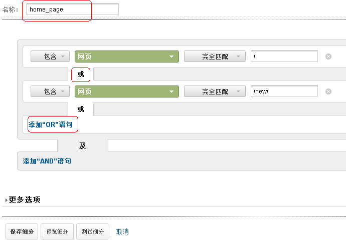 保存前,可以点一下:测试细分按钮,看看相关条件有没有匹配的访问。
