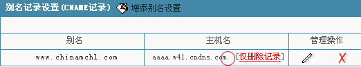 2>我们首先来做www.chinamchl.com别名至到空间赠送的三级域名aaaa.w41.cndns.com。 点击"增添别名设置",然后在弹出的框内输入"www",注意,不能输入"www.chinamchl.com"。如下图所示: