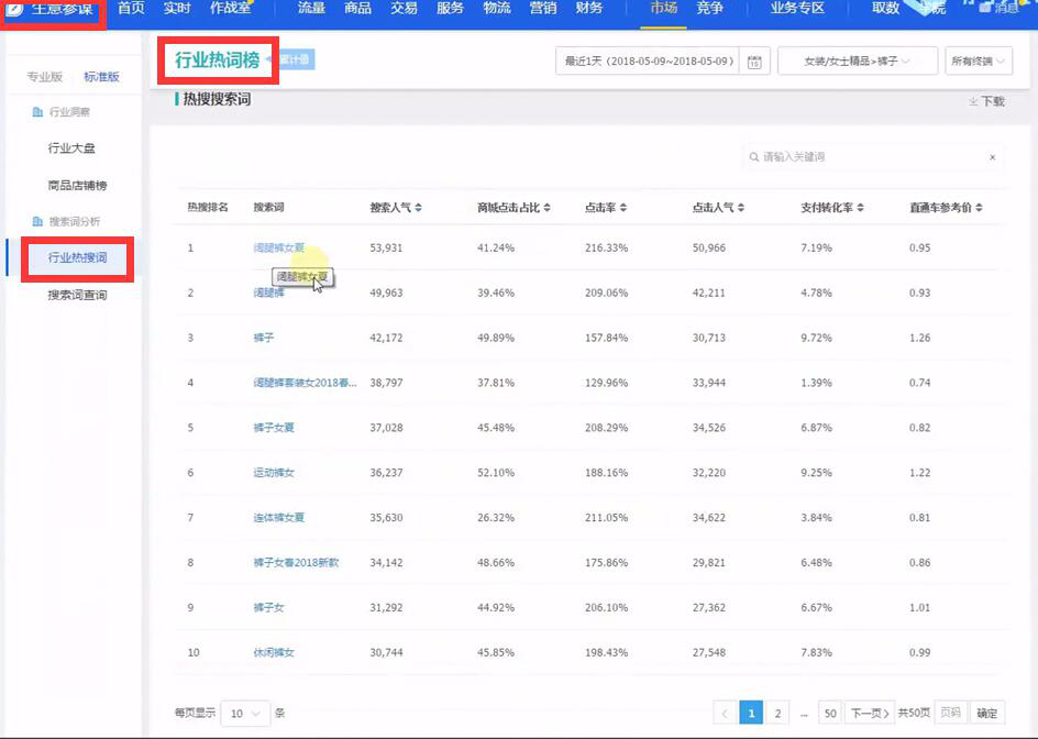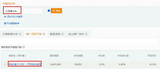 在市场行情中中搜索关键词,我们可以看到关键词的分析。