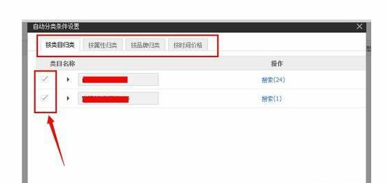 接着是添加自动分类,点击添加自动分类按钮,平台会给你列出准备好的目录。当然,如果这些目录你不满意的话,也可以自行进行勾选。自动类目分好之后,在目录前方的对勾选项中打钩,点击确定按钮。确定分类成功之后,点击保存按钮进行保存。