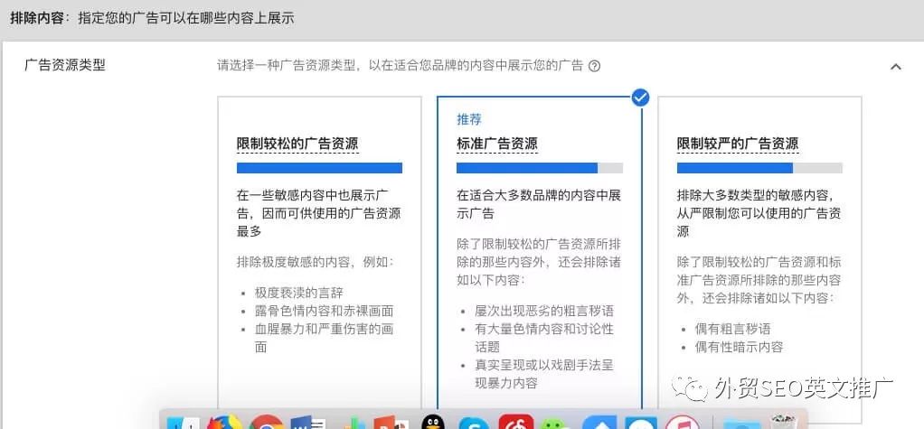 ---- 广告资源类型:建议直接使用Google Ads的推荐即可。