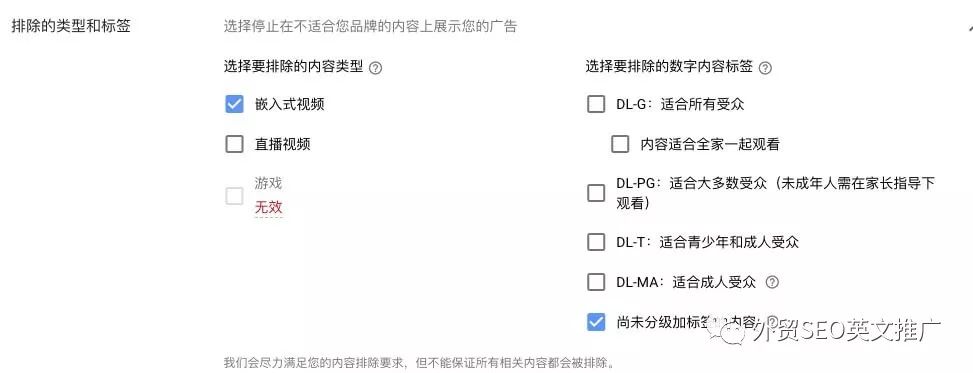 ---- 排除的类型和标签:将有助于避开你的潜在客户不会访问的内容类型。