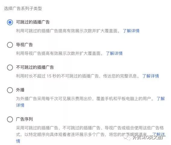 这里的目标甚是关键,不同的目标对应着不同的视频广告格式:
