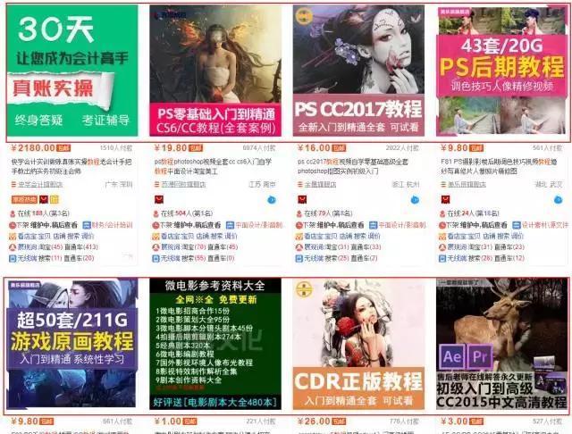 豆腐块卖的最好的都是什么东西?会计教程,ps教程,ps后期教程,原画教程,cdr教程,ae、pr教程。中间那个微电影不懂事什么就略过。