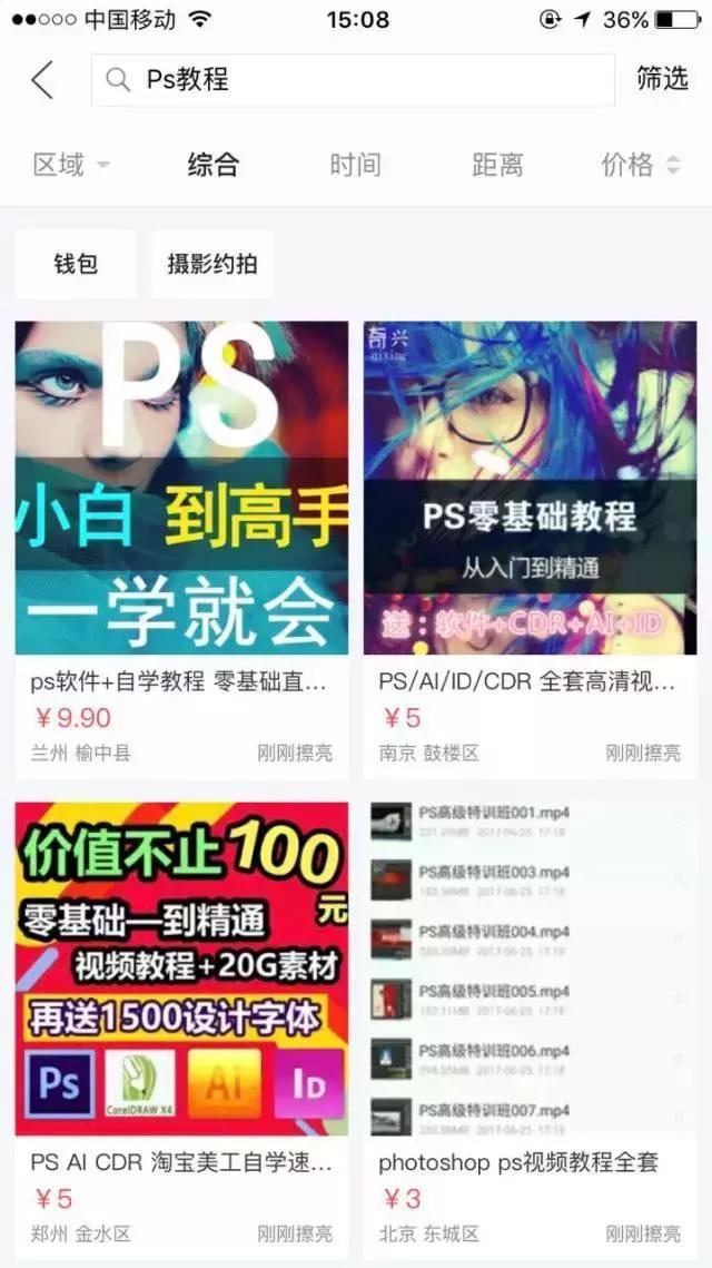 闲鱼上有摄影相关的鱼塘,也有大学相关的鱼塘。摄影师需要对照片进行后期处理,这和ps就联系上了。大学生需要自学技能,这个也联系上了。