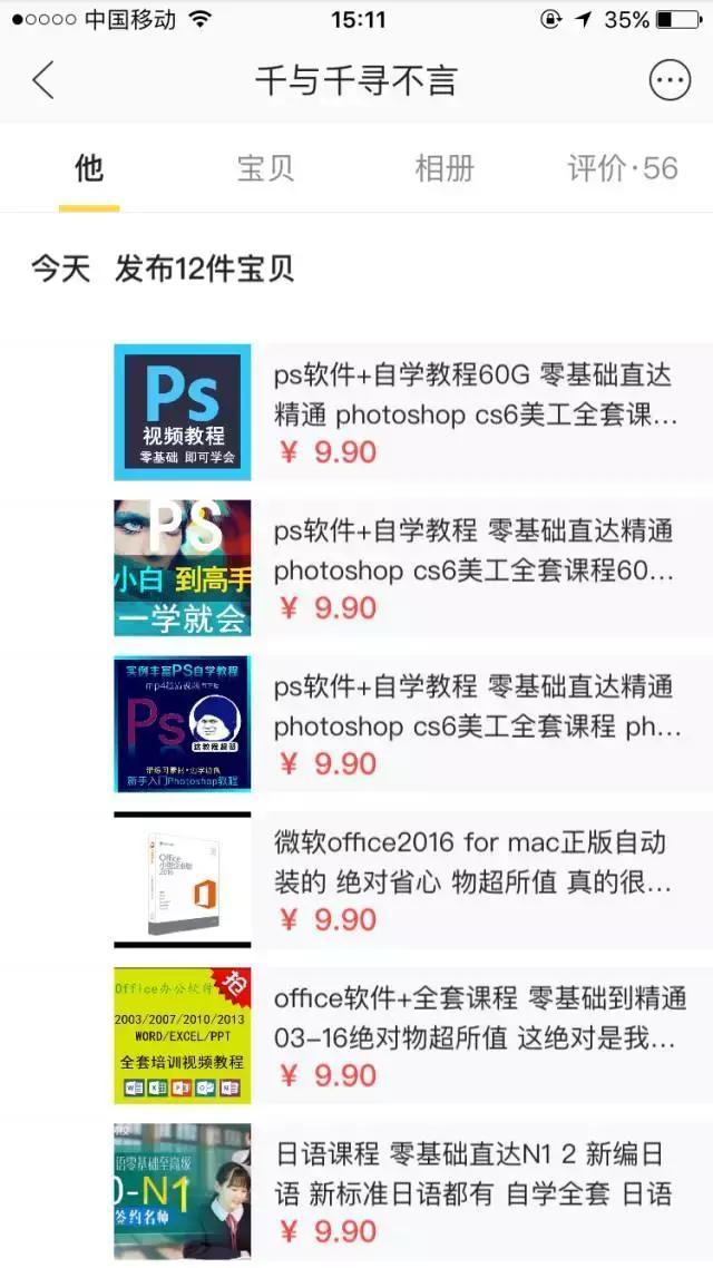 如上图,另一个卖家,同时我们也观察了其他几个卖家(闲鱼搜索ps教程),发现卖ps教程的人不少,而且都有成交。另外我们也发现了另外一个问题:他们都是同时卖几个产品。