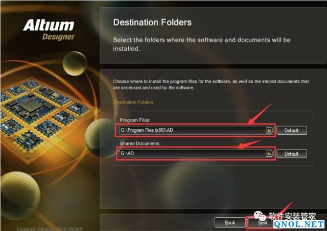 7.建议把AD软件安装到除C盘以外的磁盘,这里我安装到G盘,所以只需要把字母C改为G即可,第二个路径可以在G盘或其它盘下新建一个“AD”文件夹然后选择这个文件夹。