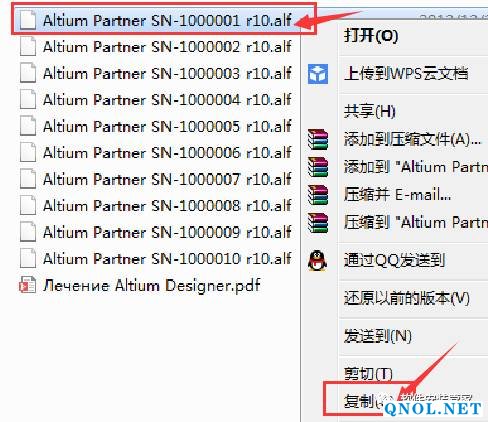 12.右击“ Altium Partner SN-1000001 r10.alf ”文件,选择“复制”。