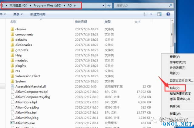 13.打开软件安装目录,在空白处右击,选择“粘贴”。