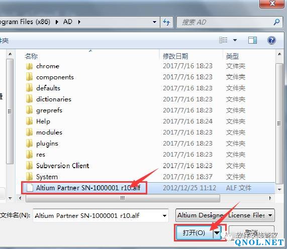 18.在软件安装目录找到“Altium Partner SN-1000001 r10.alf”文件,点击“打开”。