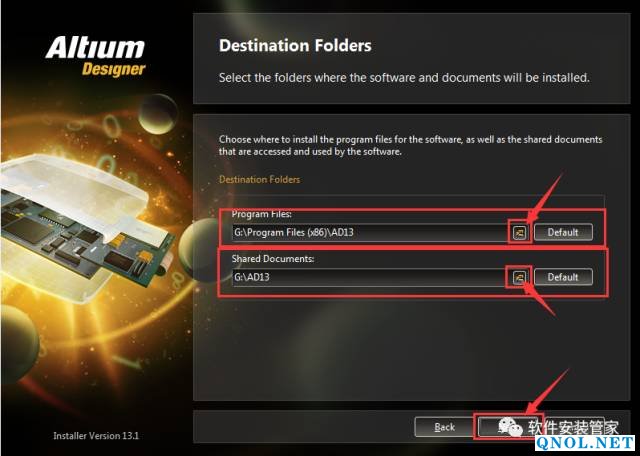 7.建议把AD软件安装到除C盘以外的磁盘,这里我安装到G盘,所以只需要把字母C改为G即可,第二个路径可以在G盘或其它盘下新建一个“AD”文件夹然后选择这个文件夹。