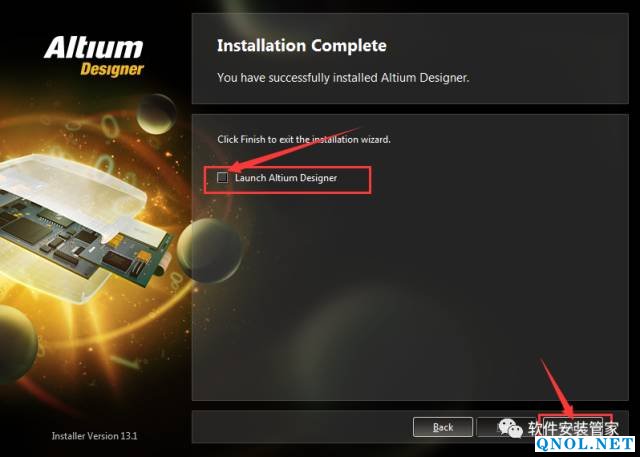 10.把“Launch Altium Designer”前面的勾去掉,点击“Finish”。