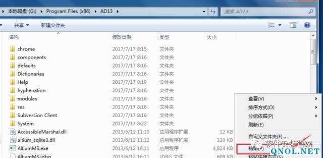 12.打开安装目录,在空白处右击,选择“粘贴”。