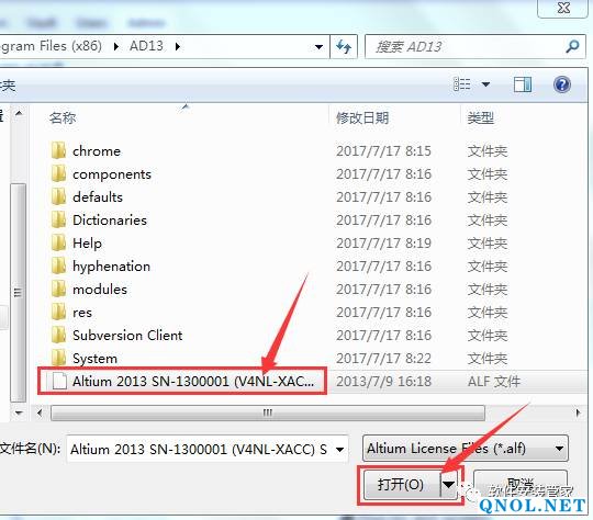 16.再软件的安装目录下找到“Altium 2013SN-1300001 (V4NL-XACC) Standalone.alf”文件,选择文件,点击“打开”。