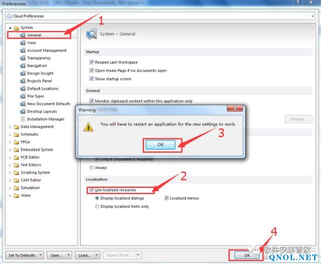 18.选择“General”,再选择“Use localized resources”,点击“OK”,再点击“OK”,关闭程序,再重新打开程序即可汉化完成。