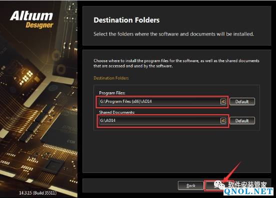 6.建议把AD软件安装到除C盘以外的磁盘,我这里安装到G盘,所以只需要把字母C改为G即可,第二个路径可以在G盘下新建一个“AD”文件夹然后选择这个文件夹。