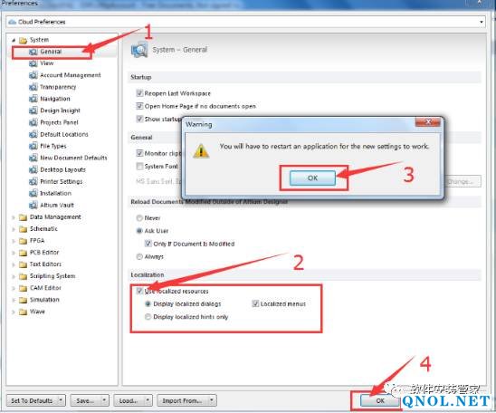 21.选择“General”。再选择“Use localized resources”,点击“OK”,再点击“OK”,关闭程序,再重新打开程序即可汉化完成。