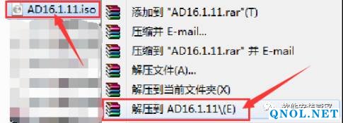 1.右击“AD16.1.11.iso”文件,点击“解压到AD16.1.11”。