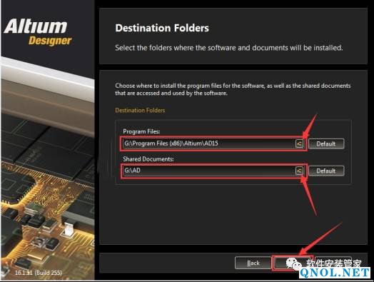 6.建议把AD软件安装到除C盘以外的磁盘,我这里安装到G盘,所以只需要把字母C改为G即可,第二个路径可以在G盘或其他盘下新建一个“AD”文件夹然后选择这个文件夹。