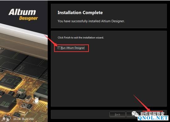 9.把“Run Altium Designer”前面的勾去掉,点击“Finish”。