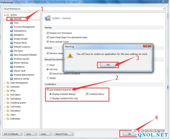 18.选择“General”,再选择“Use localized resources”,点击“OK”,再点击“OK”,关闭程序,再重新打开程序即可汉化完成。