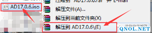 1.右击“AD17.0.6.iso”文件,点击“解压到AD17.0.6”。