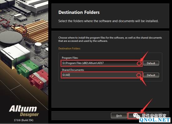 6.建议把AD软件安装到除C盘以外的磁盘,我这里安装到G盘,所以只需要把字母C改为G即可,第二个路径可以在G盘或其它盘下新建一个“AD”文件夹然后选择这个文件夹。