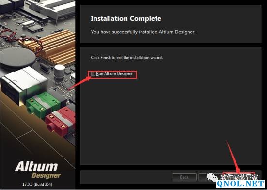 9. 把“Run Altium Designer”前面的勾去掉,点击“Finish”。