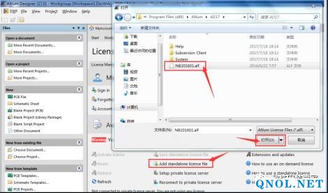 14.点击“Add standalone license file”,在软件的安装目录下找到“NB201601.alf”文件,选择文件,点击“打开”。