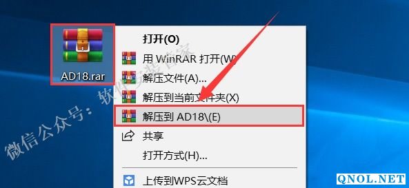 1.选中【AD18】压缩包,鼠标右击选择【解压到AD18】。