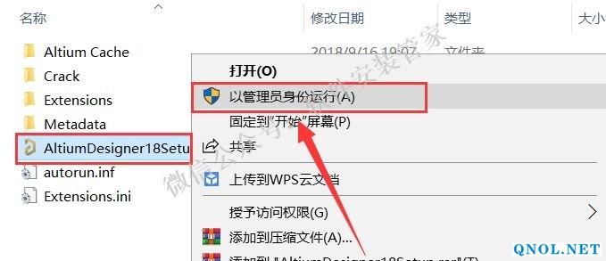 4.选中【AltiumDesigner18Setup】可执行文件,鼠标右击选择【以管理员身份运行】。