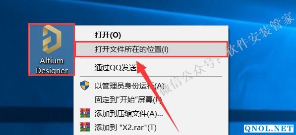 16.选中【Altium Designer】图标,鼠标右击选择【打开文件所在的位置】。