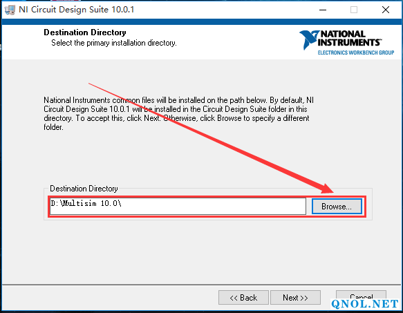 5、点击Browse更改安装路径,建议安装到除C盘以外的磁盘,可在D盘或者其他盘创建一个Multisim10.0文件夹。然后点击Next。