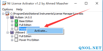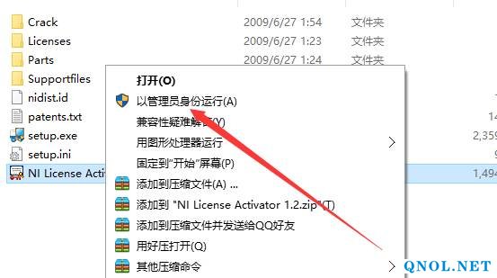 14、返回安装文件夹中找到NI License Activator 1.2.exe,鼠标右击选择以管理员身份运行。