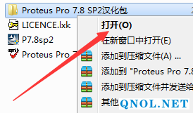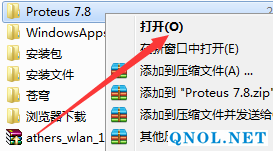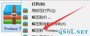1、右击软件压缩包选择解压到“Proteus 7.8”。