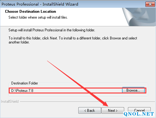 7、点击Browse更改安装路径,建议安装到除C盘以外的磁盘。可以在D盘或者其它盘创建一个Protes 7.8文件夹。然后点击Next。