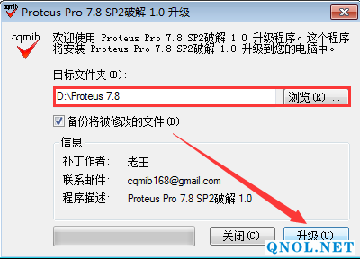 14、点击浏览选择D盘Proteus 7.8文件夹,然后点击升级。