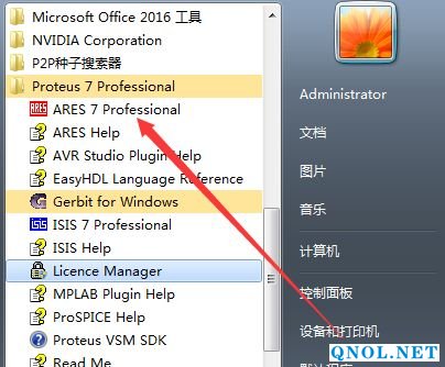 22、点击电脑左下角(windows标志),点击所有程序,Prroteus 7 Professional文件夹中的ARES 7 Professional。